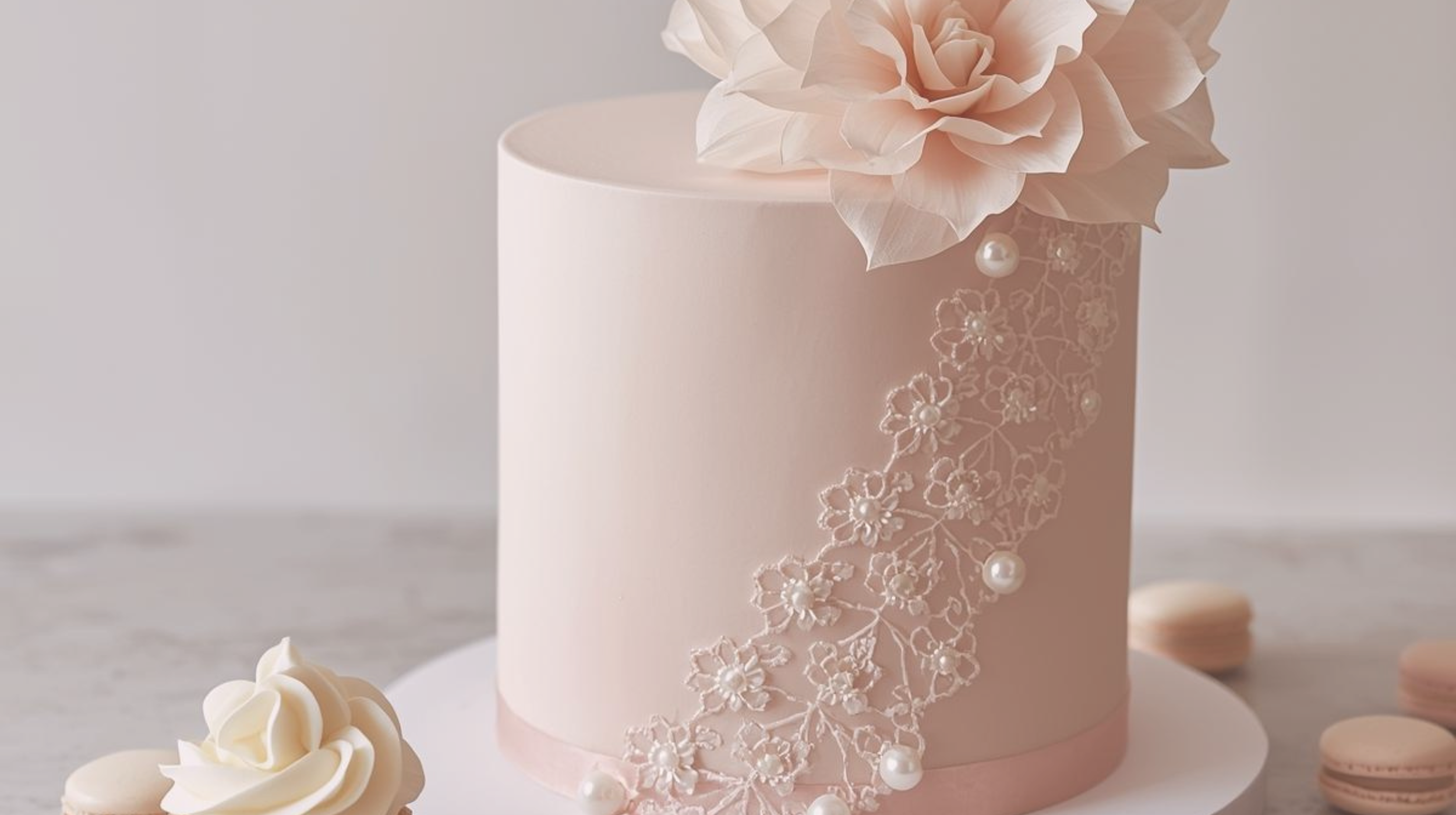 Miniature cakes finished with edible lace, delicate baroque accents, or a single handcrafted wafer blossom—elevated, graceful, and beautifully symbolic.