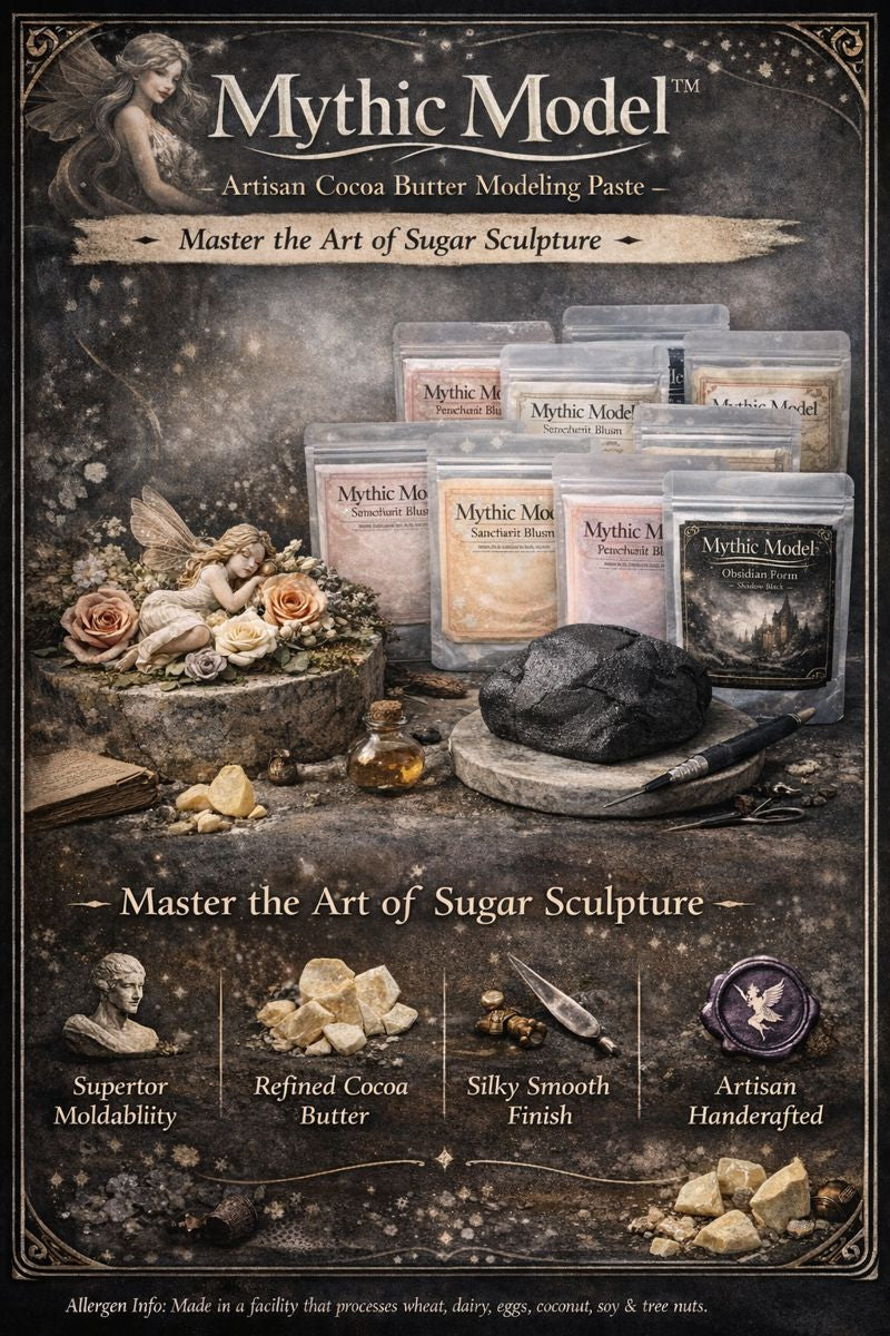 Mythic Model™ is a professional cocoa butter–based sculpting medium engineered for figures, toppers, and dimensional elements where control, structure, and clean dry-down matter.