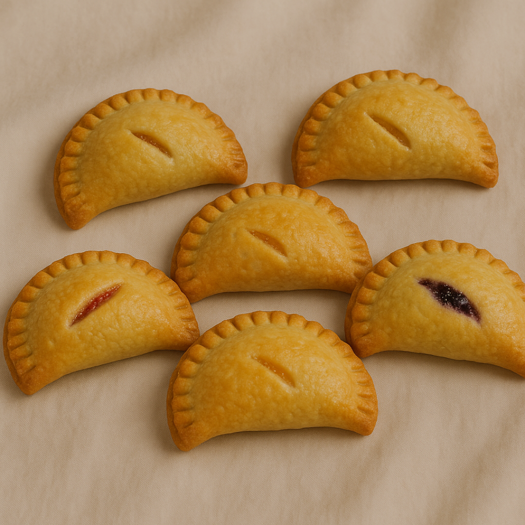 A modern, refined twist on nostalgic comfort — buttery vanilla-bean crusts filled with gourmet fruit or cream fillings, baked to golden perfection.