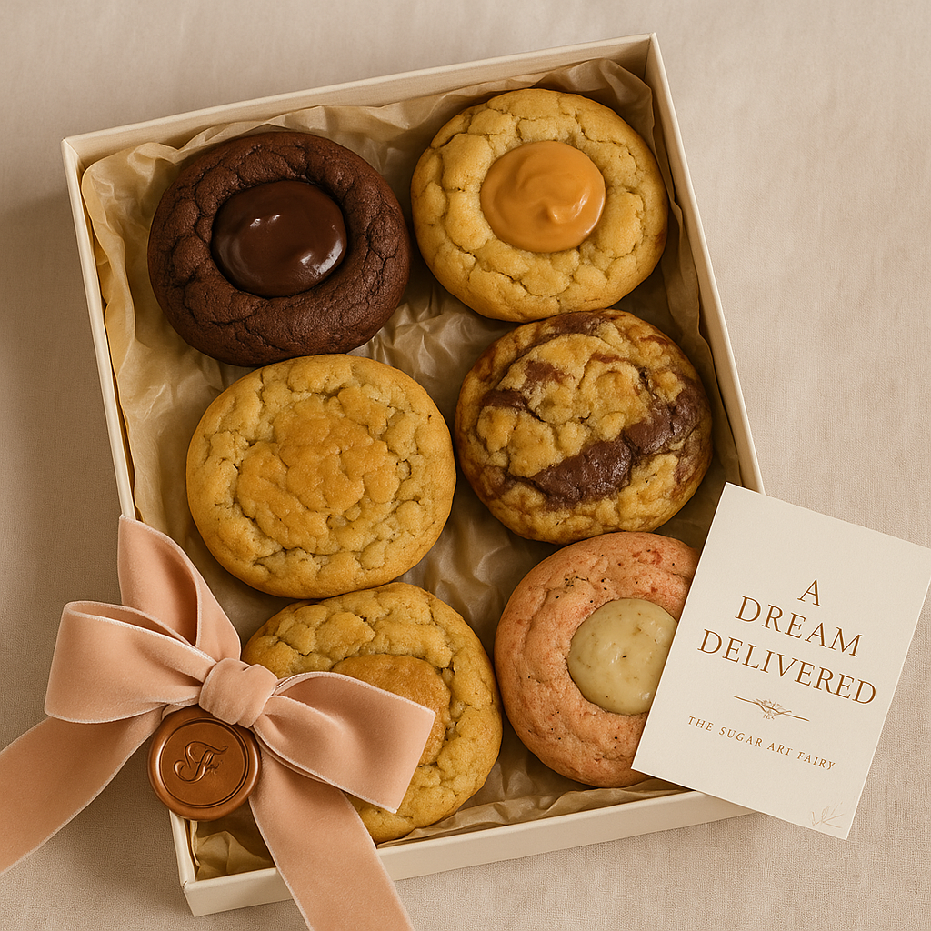 Each cookie is a handcrafted hybrid: part chewy, part cakey, irresistibly soft, and filled with ganache or cream. Whether you’re treating yourself or enchanting someone else, this box is a celebration of personal taste and fairy-touched flavor.